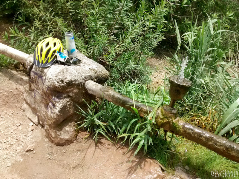 En una tubería de agua potable alguien tuvo la brillante idea de poner un cáliz del que brota agua fresquísima; aproveché para enjuagarme el polvo del camino y el sudor, y rellenar mi botella.