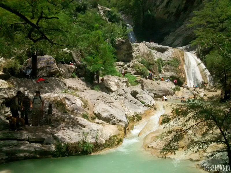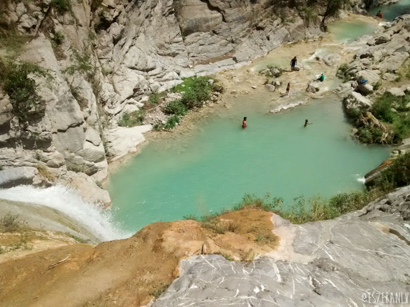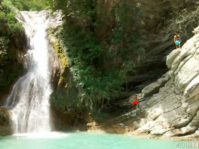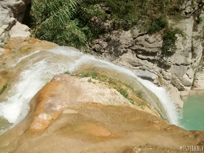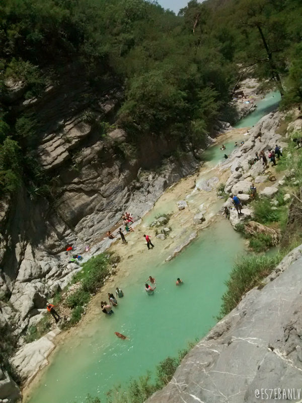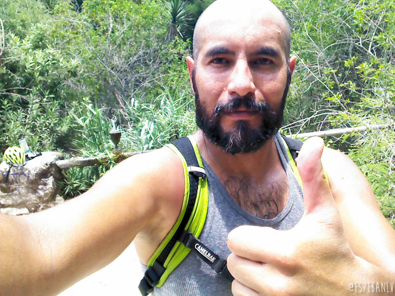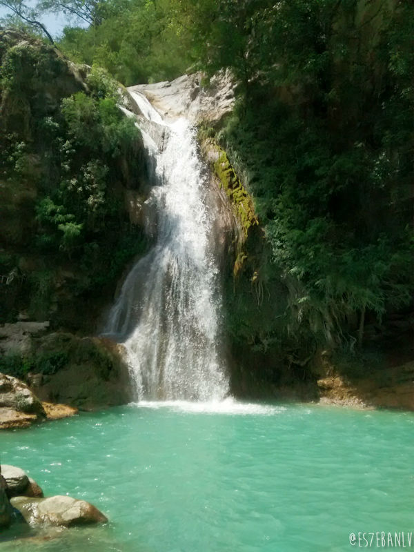 Las cascadas tienen 4 pozas, y obviamente la superior es en la que me iba a quedar yo. La subida no está complicada y bien vale la pena. Puse mis cosas en una piedra más o menos alejada de por donde llegaría toda la gente, y me metí a nadar justo junto a la cascada que cae a la poza de abajo… El agua estaba helada, pero como moría de calor y cansancio (hice 47km en 2h:51m de pedaleo, el tiempo total obviamente es mucho mayor pues cuenta semáforos, paradas en tiendas, etc, a 16km/h y 62km/h max) me cayó increíblemente bien.