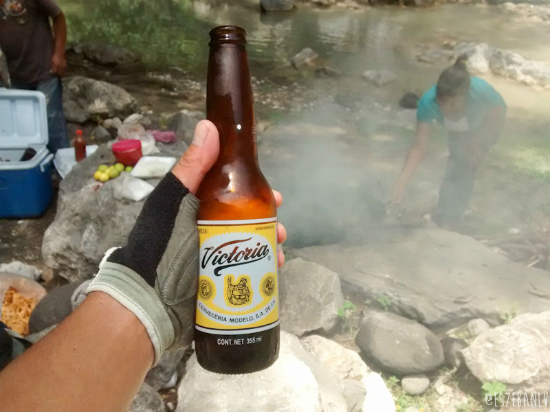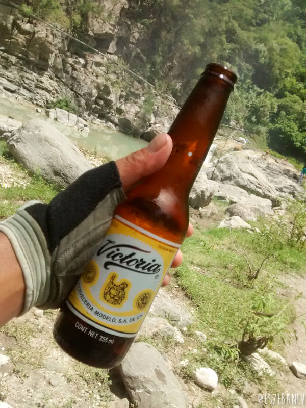 Al fin, al llegar a las cascadas propiamente, una pareja de vendedores de memelas me recibió de la mejor manera: el esposo puso una Victoria helada en mis manos sin preguntarme nada. ¡Carajo!