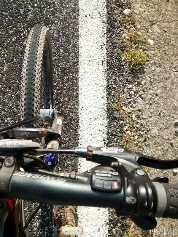 El camino de terracería de regreso resultó peor de lo que pensaba, pesadísimo. De hecho en muchos tramos tuve que bajarme de la bici y caminar de tan empinado que estaba. Si lo aguantaba, pero tomaba en cuenta que me faltaba todo lo demás -que también es subida- y tenía que guardar fuerza y energía, y solo había comido mis dos sándwiches y mis dos chelitas.