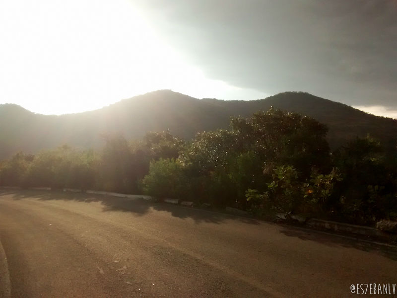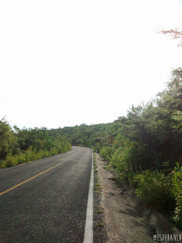 Al llegar a la parada de autobús descansé un buen rato recuperándome, juré jamás repetir tamaña idiotez, y seguí hasta El Aguacate. ¿Recuerdan las curvas de bajada de 60hm/h? ¡Están mortales de subida! Pero al ser pavimento es mucho más sencillo. Me corté con una espina al acercarme mucho a una planta carretera.
