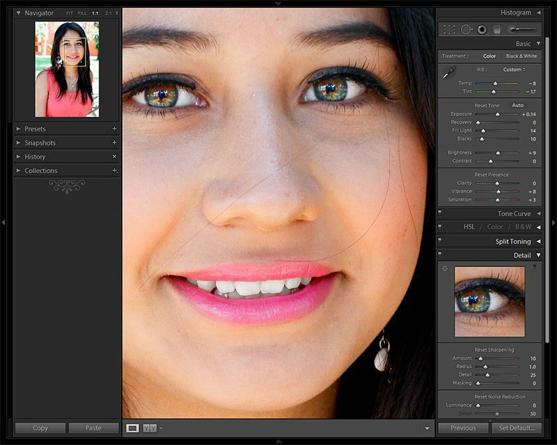 - Edición 2: ruido, definición, correcciones y detallado, ojos y piel.